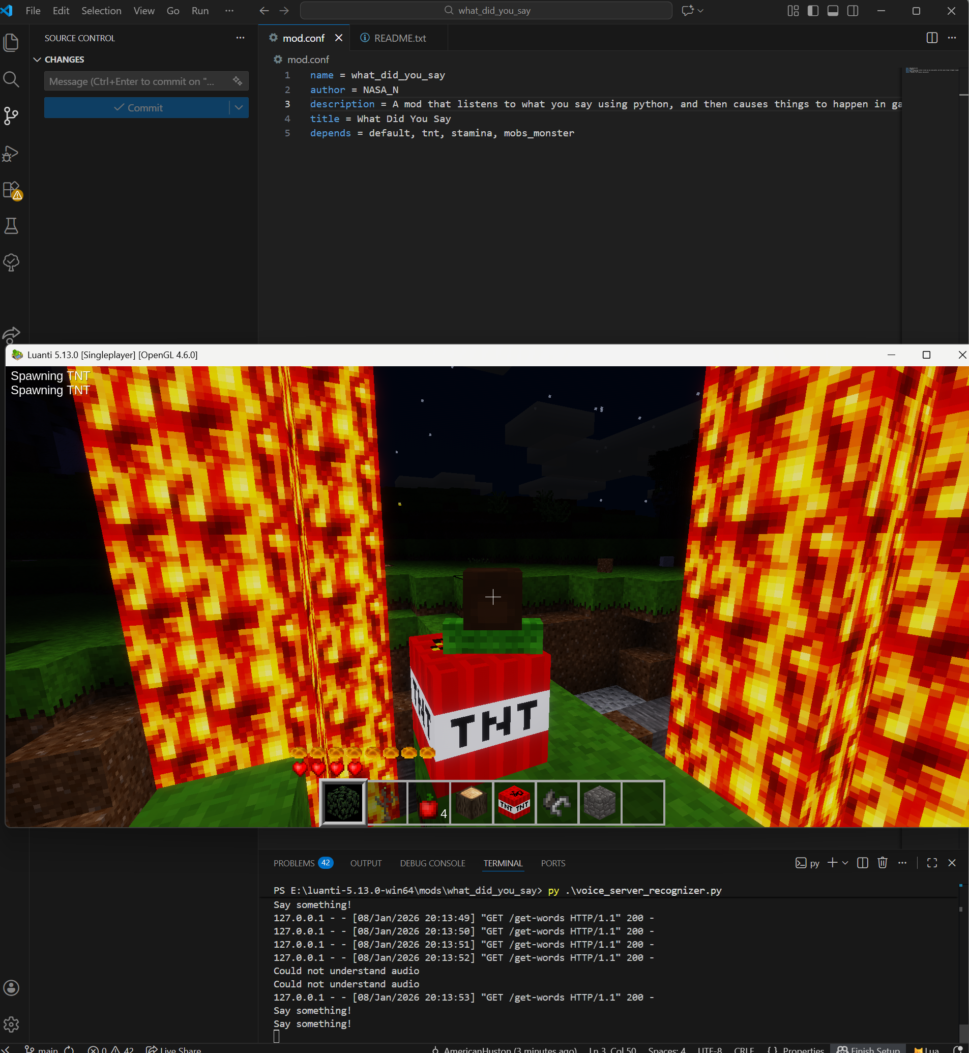 - Start the voice server by double clicking or typing "./startVoiceServer" in PowerShell or Command Prompt