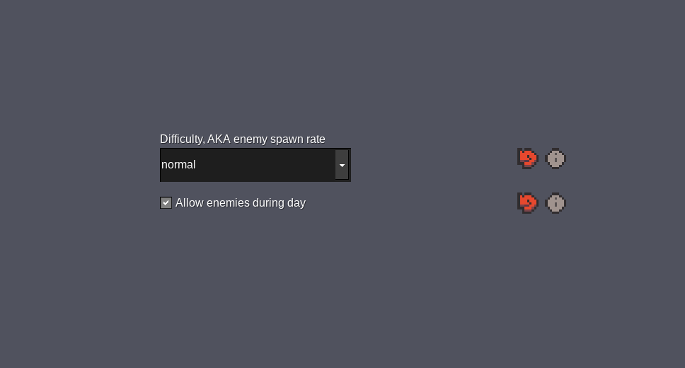 You can set enemy spawn rates from Very Easy to Apocalyptic. Enemies spawn frequently. You can also enable daytime spawning for enemies.