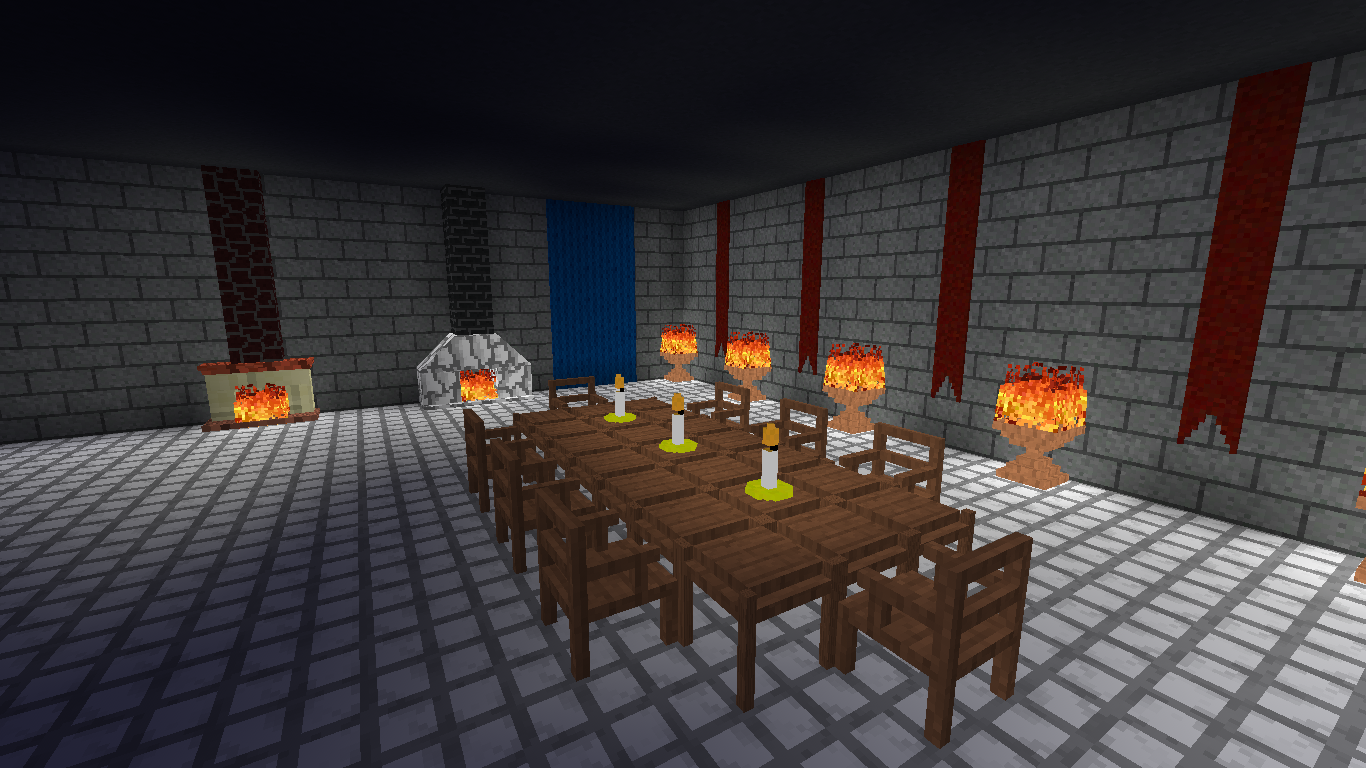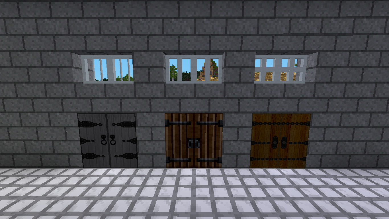 There are many building blocks to construct a castle. There are also many windows and 3 doors.