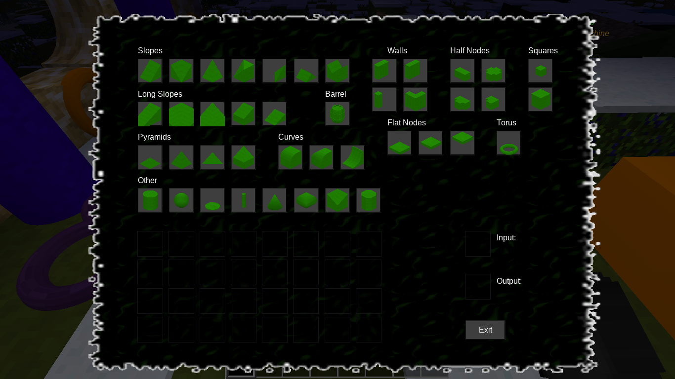 My Mesh Nodes supports myores, myglass, batmod, moreblocks, moretrees, mywhiteblock,mycobble, mydoorwood(mydoors)and mymulch.