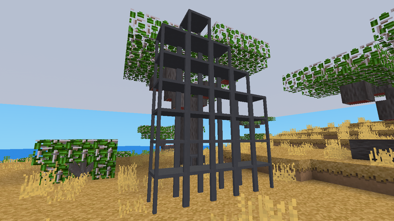 An easy way to reach the high places. This mod helps you build scaffolding to help with building high. Right click to place the scaffolding. Keep your crosshair on the bottom one and right click and it will build up as high as you want. You can climb the scaffolding like a ladder. When you are done simply remove the bottom scaffold and the rest come down.