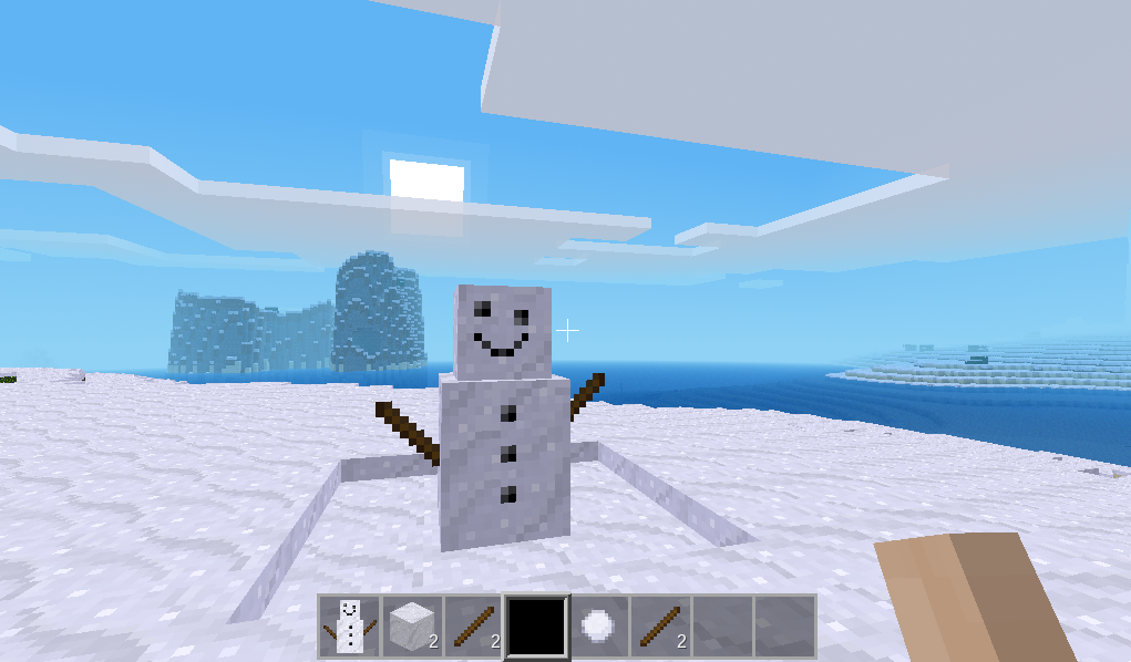 - You'll need two snow blocks and two sticks to craft a snowman!