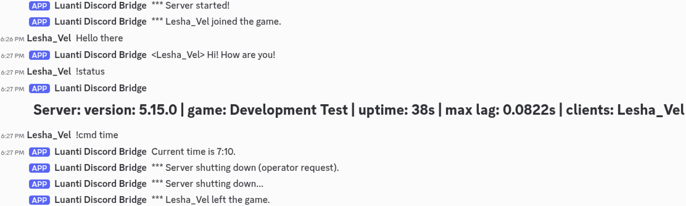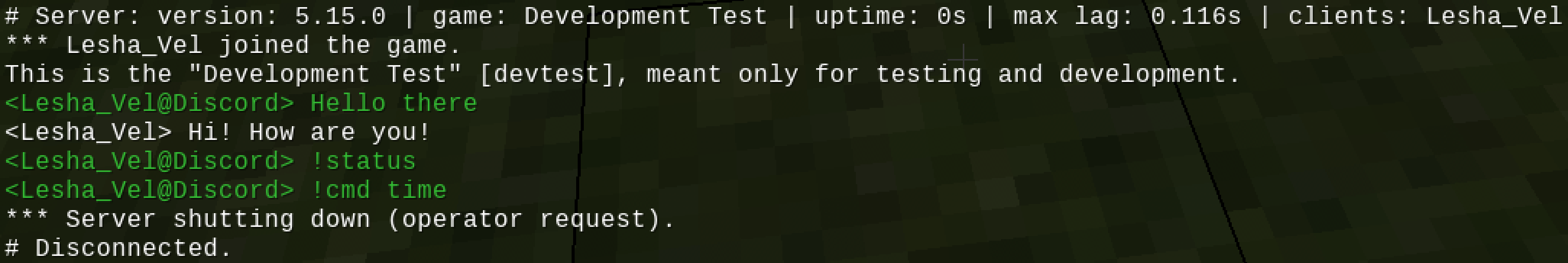 - Relaying server chat to Discord, and Discord chat to the server