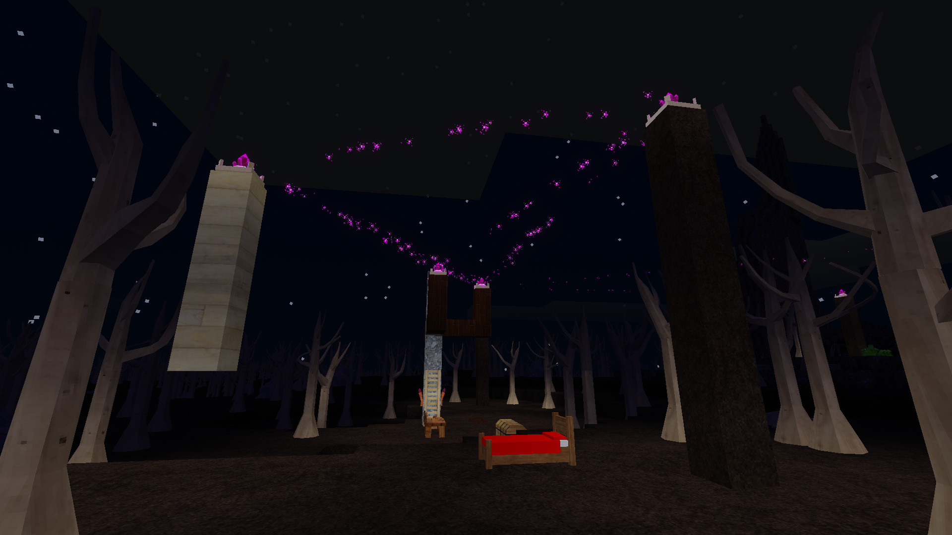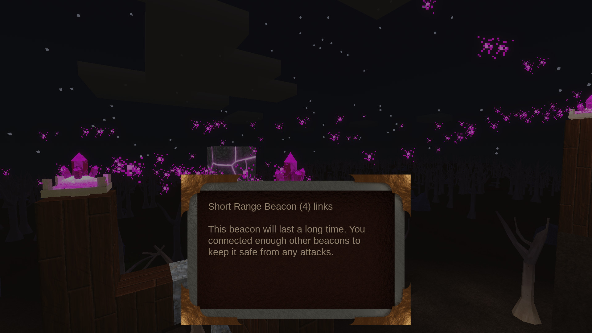 You place little beacons, kill the occasional buggy monster that comes to destroy them, use their drops to make more beacons. That and a small progression system with resource nodes on the surface. I think the idea is that you spread your network of beacons across the land, but it doesn't seem to work since as the network gets bigger, you become unable to protect all of them at once - remember, the monsters destroy your beacons and torches.