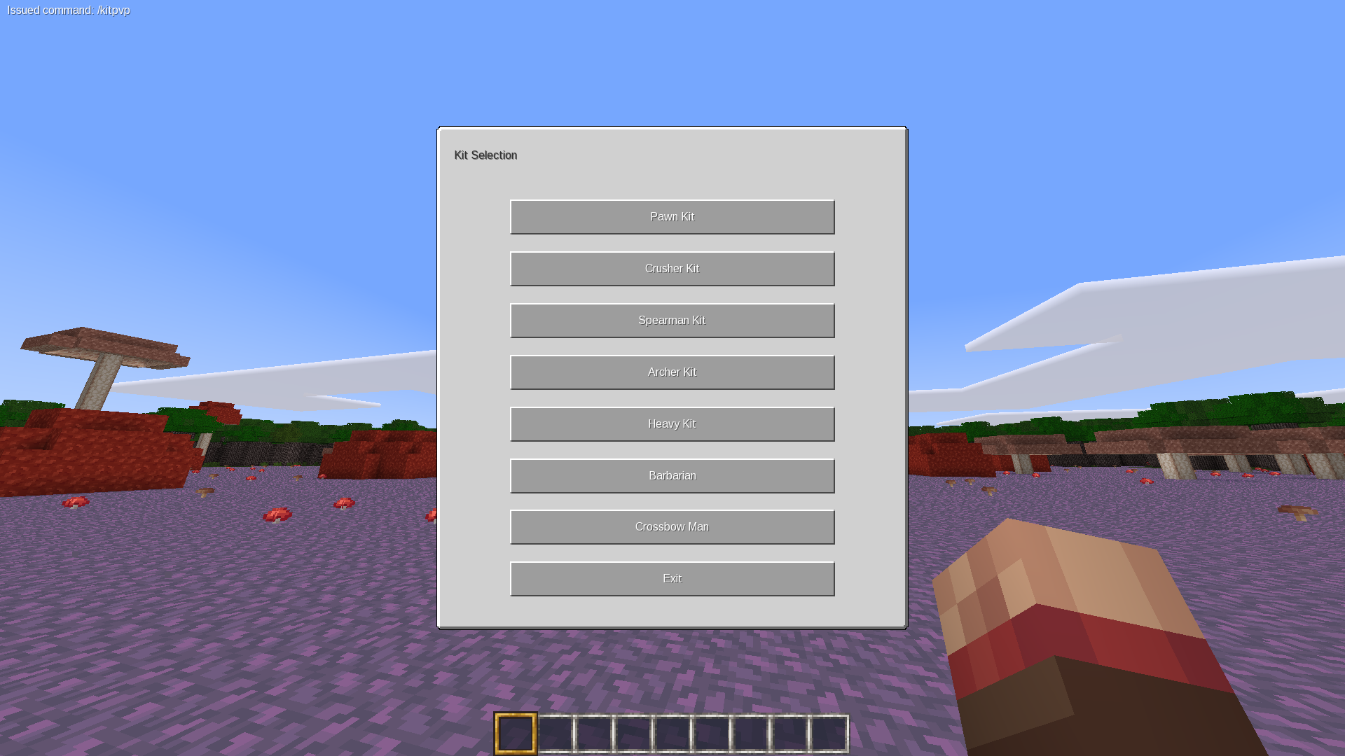 This mod adds kits for pvp in a menu