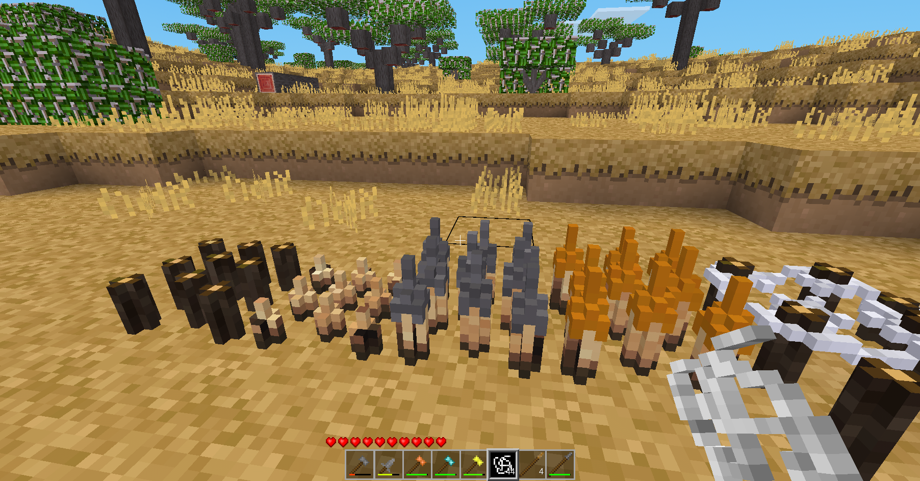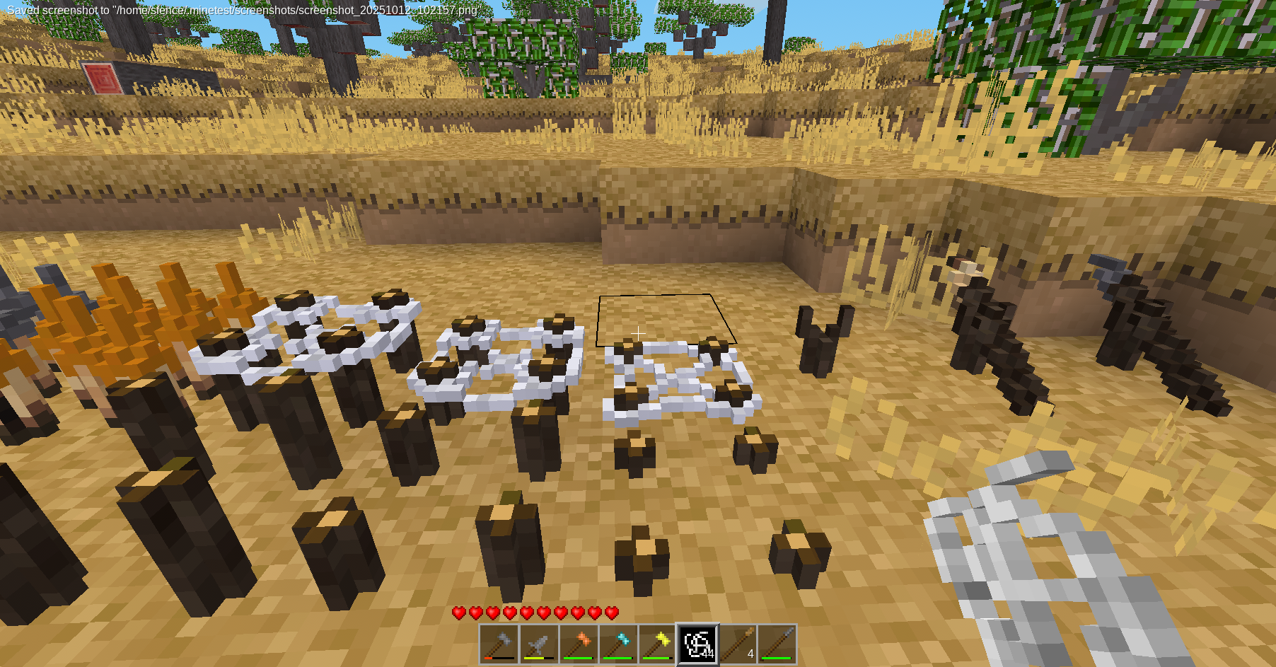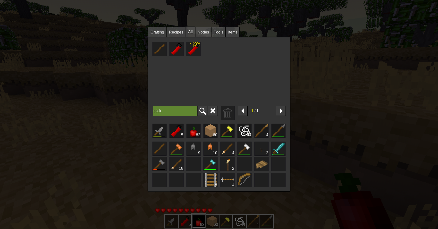 - Tip: The mod checks the hotbar line adjacent to your wielded slot — keep the pole parts on that line so the hammer action can find them.