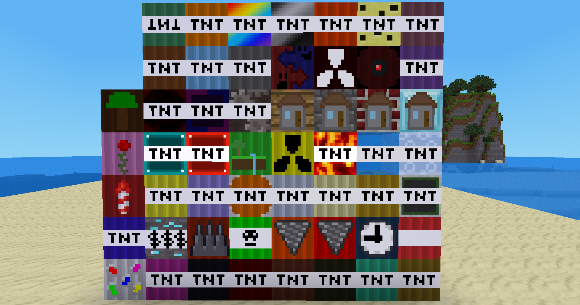 Adds many types of TNT, and they're all craftable! If you wanna know every TNT, you should visit a mini wiki about it: https://skybuilder1717.ru/too_much_tnt/