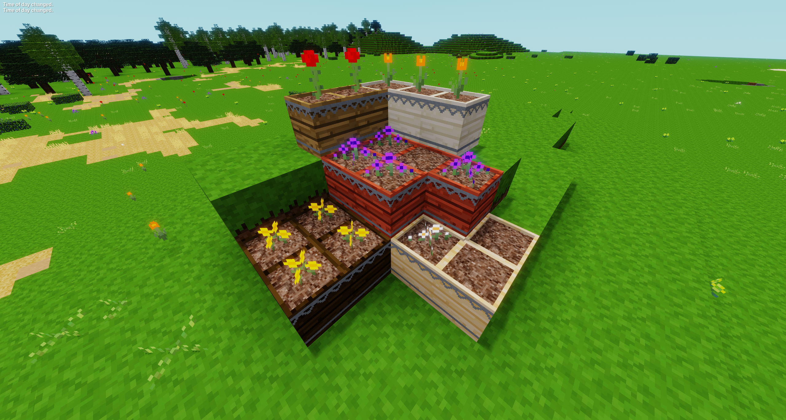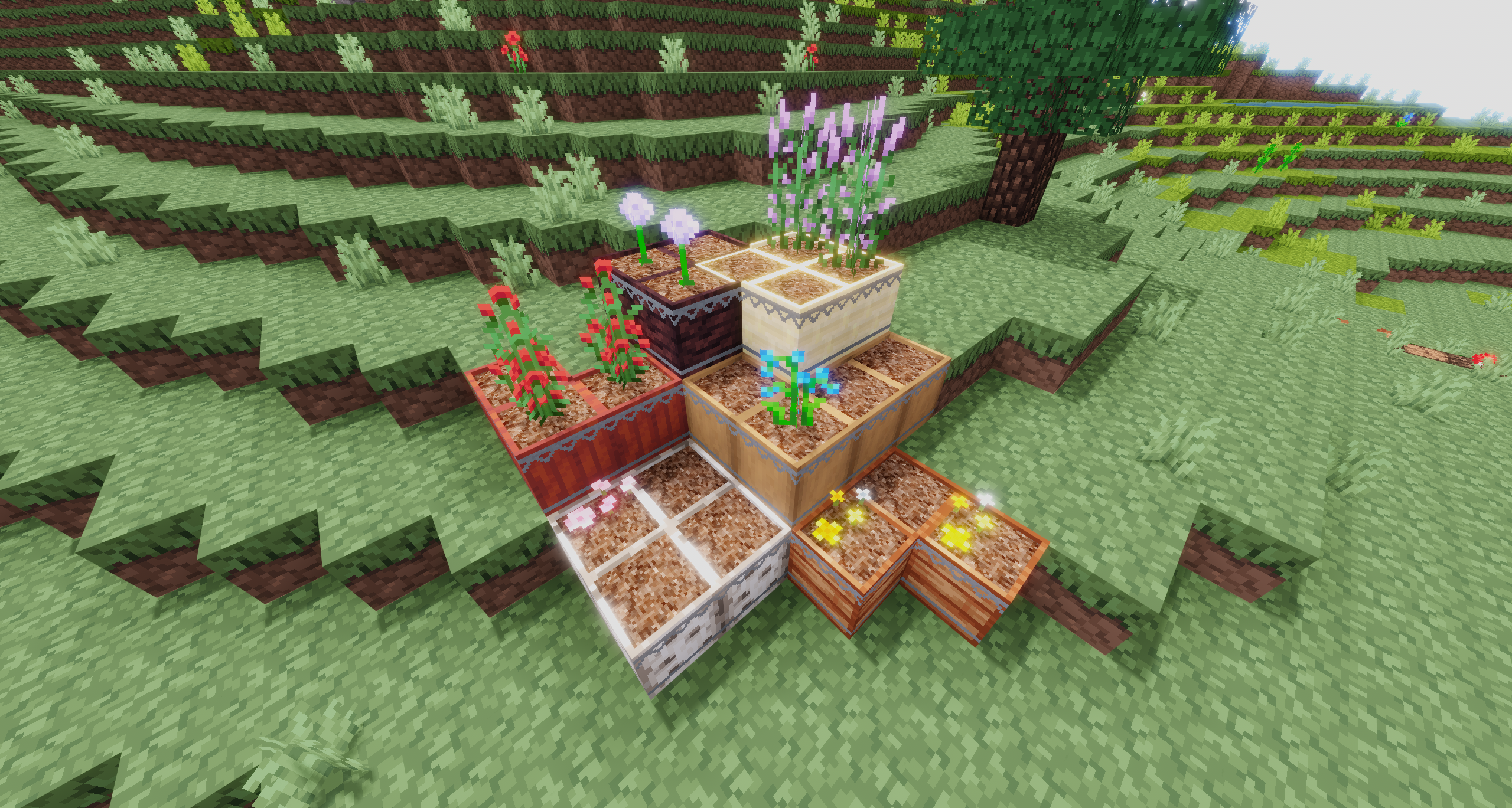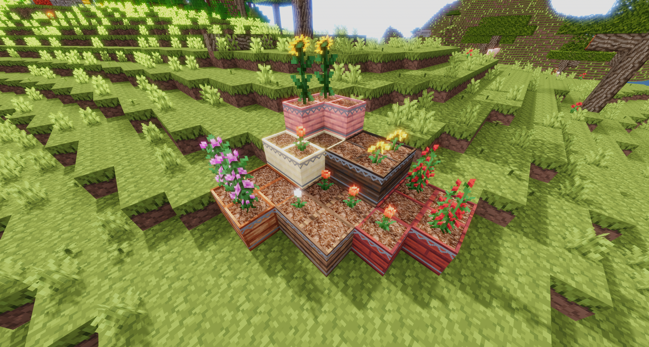 While this mod has obvious uses in farming flowers and dyes, where it really shines is in making houses, yards, and villages look better.
