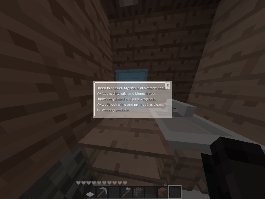 so you have variables for body smell, hair, teeth, etc. after a timer has elapsed, the variable can change. so if you smell ok-ish for example, you'll smell bad when its timer has elapsed. unless you do something to prevent the change, like washing. using products can modify (not always, depends) your variables!