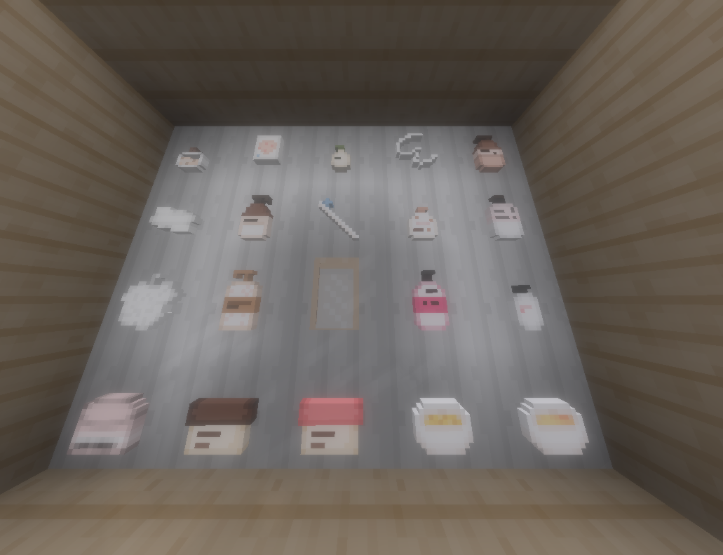 Gave me goosebumps. I never knew pixely bubbles could make me smile. Aaannywayzz! I have used all items there were. Including the wooden mirror. I think it doesn't display anything because it's made of wood, not the stuff mirrors are normally made with. But it's functional and shows all I need to know!