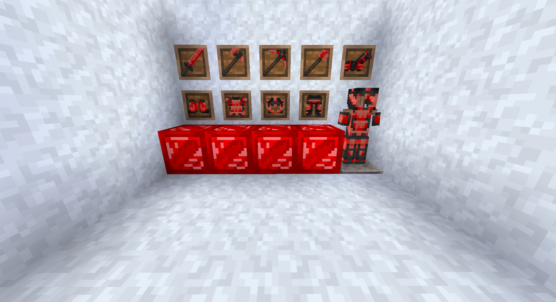 Craft rubies based on the recipe chosen by the server admin. Craft with rubies to fashion all the ordinary gear like tools, armors, and horse armor. Equip the tools and armor!