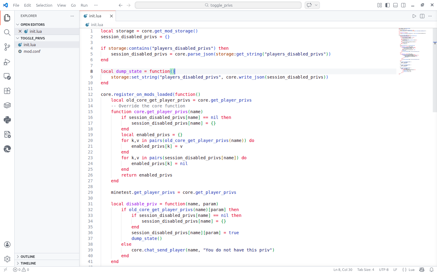 Ever had that annoying experience where players have to ask you to grant and revoke them certain privileges? You're in luck! Toggle privs allows players to enable and disable privileges granted to them, minimizing the need to ask the admins to grant and revoke their privileges.