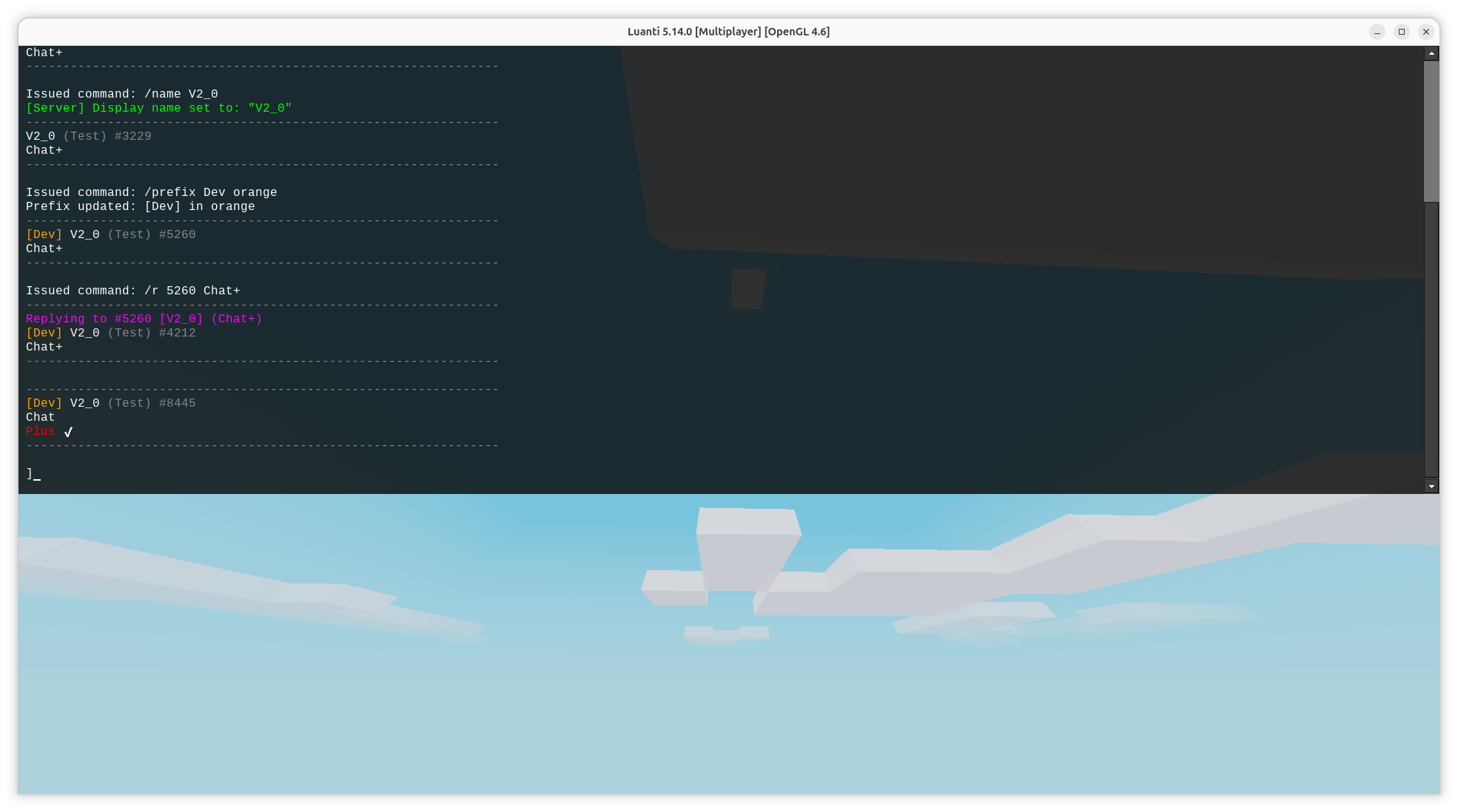 Display Names: You can use /name to change how others see you. Example: You have your old username, and you want to change it. You just do /name (your new username) and it changes how others see you. (Notice: It doesn't change your actual Luanti username) 🔗