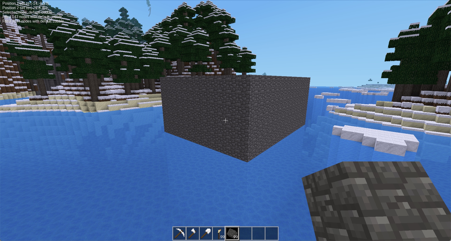 Screenshots: The first is before doing anything. Second is setting pos1, third is pos2, fourth is setnode, fifth is fill and sixth is airfill. Have fun, and I would like feedback!