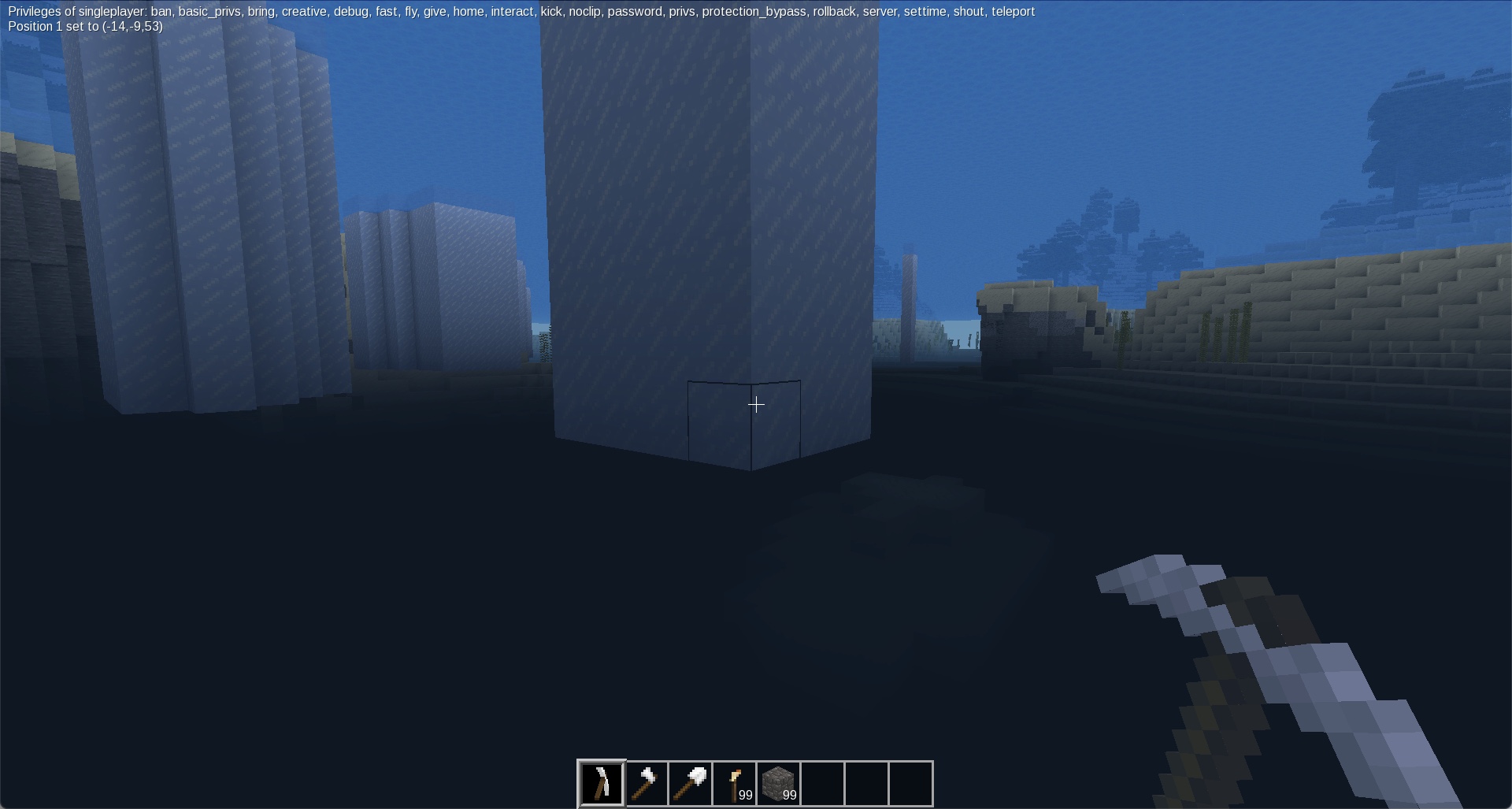 /delete: Converts all blocks between pos1 and pos2 to air blocks.